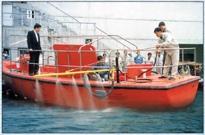2、喷洒臂伸出船侧面4.75米,每组臂上4个喷嘴均可向水面喷洒,可在船的两侧各装喷洒臂增大扫油面积。